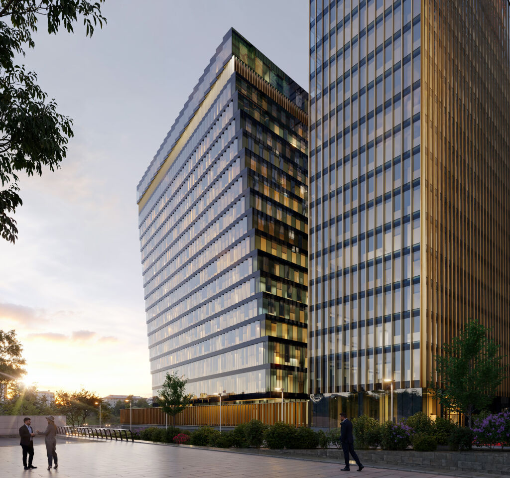 МФК prime-класса объединит два обособленных офисных блока: Л-образной формы площадью 58,8 тыс. кв. м и линейный площадью 26,2 тыс. кв. м. Концепция благоустройства территории предполагает организацию зеленой зоны с МАФ, клумбами, деревьями. Офисные помещения займут со 2 по 18 этаж. Первый этаж отводится под лобби с зоной ожидания, магазины, рестораны и кафе.